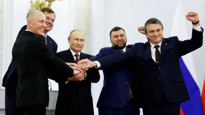 El 30 de septiembre de 2022, en el salón de San Jorge del palacio del Gran Kremlin, se llevó a cabo una ceremonia para la firma de los tratados de adhesión de la República Popular de Donetsk, la República Popular de Lugansk, la región de Zaporiyia y la región de Jersón a la Federación Rusa.