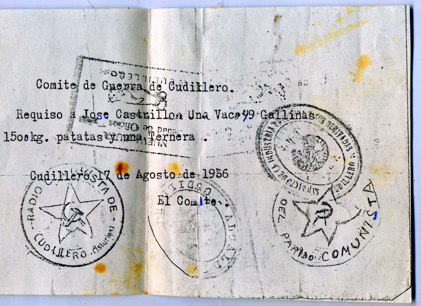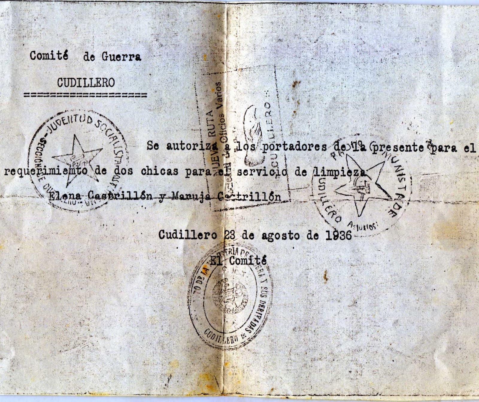 Esto es lo que nos espera si gana Sánchez y el Coletas; requisas, agobios, prostitución, malas caras, gulags, pobreza. Odio las estrellas de Cinco puntas del tampón del comité de Guerra de Cudillero. Es la testuz del macho cabrío, símbolo masónico, refleja la cruz inversa cuando entraron en tromba los Internacionales del batallón Lincoln. ¡Preston, inglesote malvado y torticero, pero tú qué coños dices cuando cuentas la historia a tu modo!